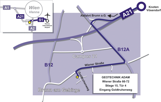 Anfahrt über A21 von S1 / Flughafen Wien Schwechat / Vienna International Airport kommend